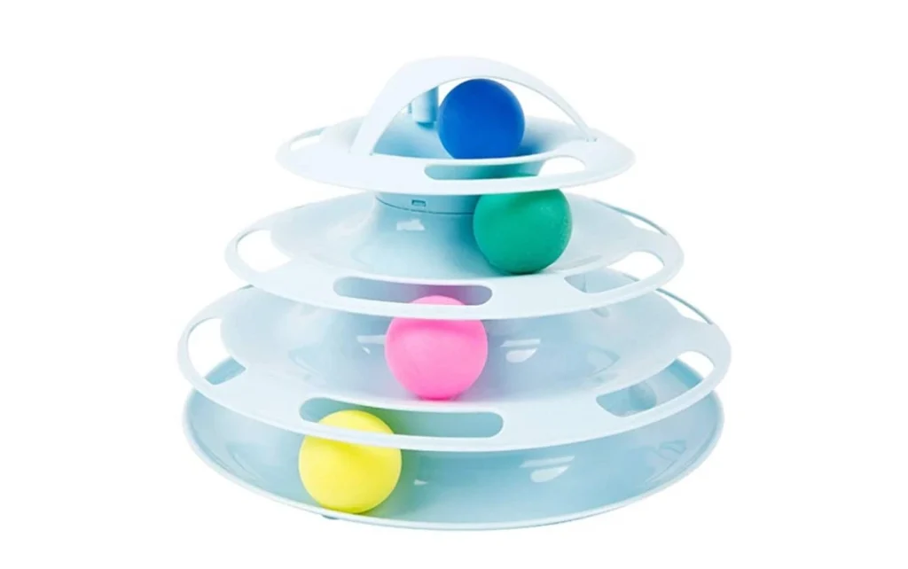 ถ้าคุณมีเวลาเล่นกับน้องแมวไม่มากนัก แต่ก็อยากจะหาของเล่นสักชิ้นที่น้องแมวสามารถเล่นสนุกได้ด้วยตัวเอง ของเล่นแบบรางบอล 3 ชั้นน่าจะเป็นอีกหนึ่งตัวเลือกที่ดีสำหรับคุณ เพราะว่าตัวรางบอล 4 ชั้นนั้นจะสามารถทำให้บอลที่อยู่ข้างในเคลื่อนไหวไปมาได้ในเวลาที่น้องแมวใช้ขาเขี่ย และส่วนหัวของตัวรางบอลจะมีช่องไว้สำหรับเสียบไม้ล่อแมวด้วย ซึ่งคุณก็สามารถหาแมวล่อแมวมาเสียบเพื่อเพิ่มความสนุกสนานให้กับน้องแมว